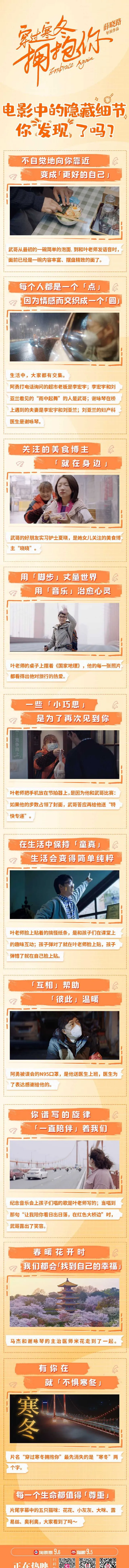 影片一開頭,片名還沒出來時,就已經有點繃不住了,那種緊張的氛圍,消殺的場面,焦急的人群,電視裏播放的主播聲音……當全部聚在一起,在幾分鐘內,你完全還沒做好準備時,一下子全部湧入你的眼簾,我只能用震撼來形容。那一段,我真的看到開始冒冷汗了,仿佛又回到了那個除夕,那個人心惶惶的時期。