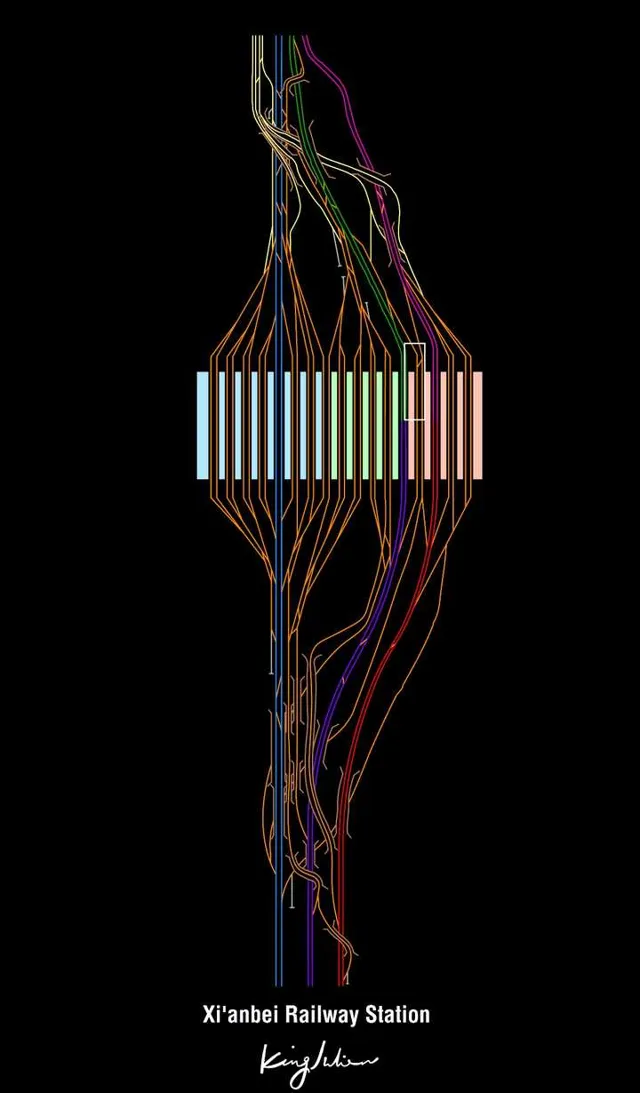 根據評論區的補充,補充西安北27台,大西高速線轉西銀高速線僅可在27台跨線: