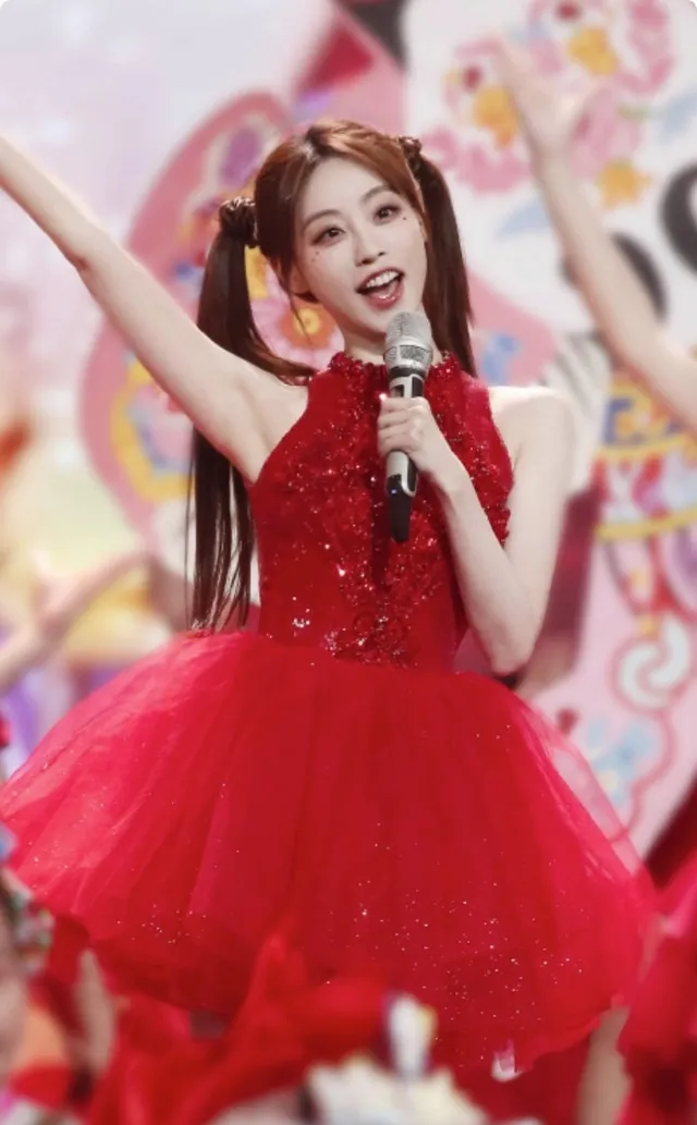 湖南春晚上的祝緒丹,穿著一襲紅色的蓬蓬公主裙,蹦蹦跳跳狀態很好,在邊唱邊跳的時候,好像活潑的小手辦,身材完美,顏值完美,一懟臉就是一張精致的洋娃娃,讓人挪不開視線。