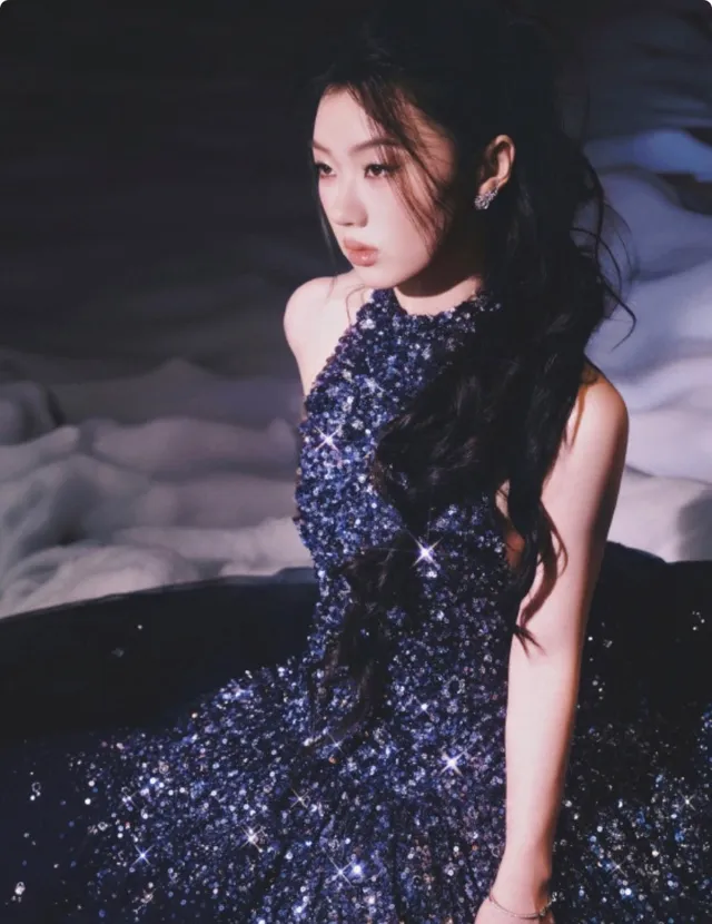 她穿了一條深色的銀河碎鉆裙,做了一款更顯個性的歐美妝,說實話這套造型沒有單依純平日那麽吸睛的美,但風格卻是紮眼,反差確實很強。