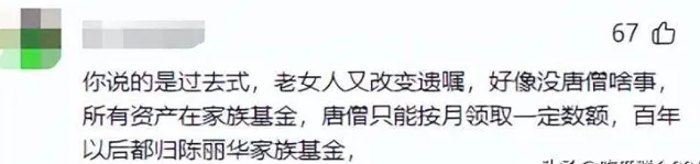 陳麗華在采訪中常常提到,「家裏事我說了算」,遲重瑞則在旁附和道:「都聽太太的」。但細心觀察會發現,陳麗華的三個子女都在家族企業裏擔任重要職位,而遲重瑞則似乎一直未能進入核心圈子。外界曾有訊息稱,陳麗華準備將580億家產分配給三個孩子每人100億,剩余的則留給遲重瑞。然而,遺囑後來發生了變化,因為陳麗華沒有親生子女,這使得財產分配成為了一個未知數。更為令人驚訝的是,陳麗華的一條項鏈就價值1億元,還專門配有保鏢,而遲重瑞卻不得不靠直播銷售黃花梨手串來維持生計。原價500萬的手串,他在直播間裏賣到4800元,而業內人士透露,成本不過幾百元。