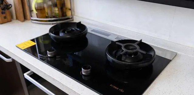 方太整合烹飪中心燃氣竈的面板采用了鋼化黑玻材質,顏值高、易清潔,算是目前主流的面板材質之一。
