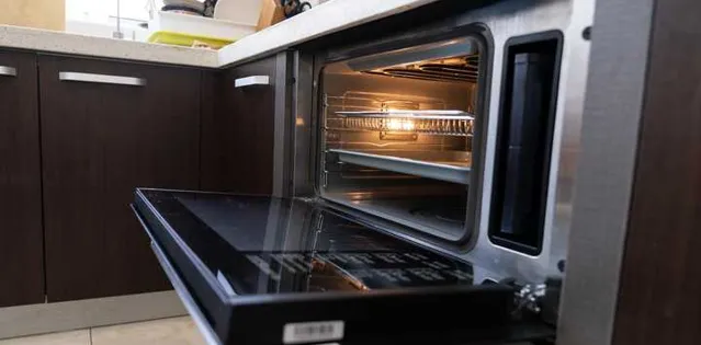 蒸烤箱的門板基本可以90°開啟,取放食材很方便。