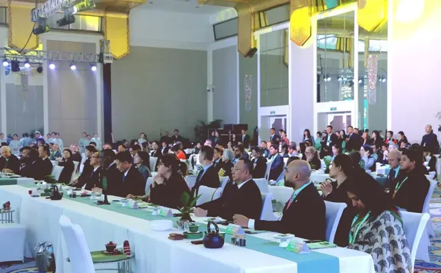 中國茶,世界享。大會現場,肯亞、摩洛哥等36國駐華使節齊聚,共品共賞楚天好茶,共論中國茶故事。