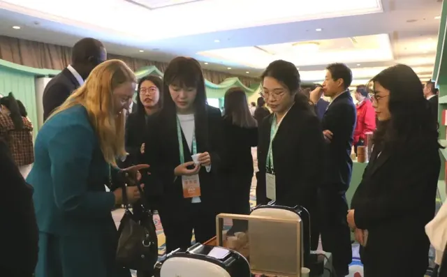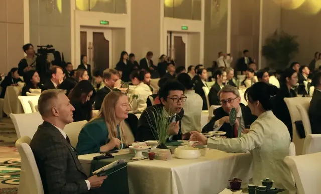國內外嘉賓互動交流會上,中國食品土畜進出口商會副會長於露與多國大使進行對話,交流品鑒感受,探討國際茶市場合作的廣闊可能。