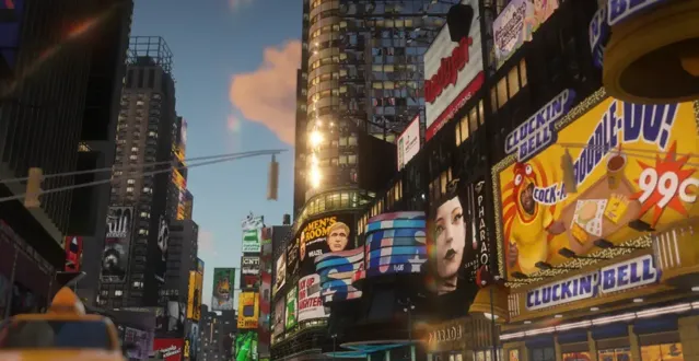 新自由城常常堵車——這是有意為之,意在還原原作自由城和現實中紐約的真實狀況。街上的車輛均由4代實裝的型號填充,車牌號、車輛的引擎轟鳴聲、車上廣播電台播放的音樂,都是原汁原味。