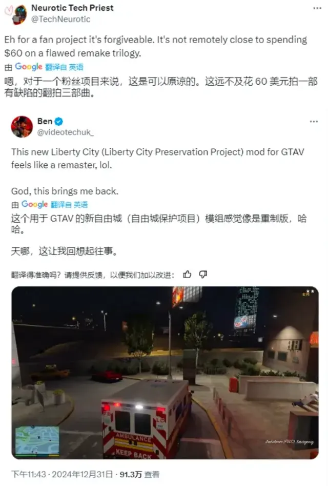 像是在2024年年末,就有一款題為「自由城保護計劃」(Liberty City Preservation)的大型GTA5模組正式上線。