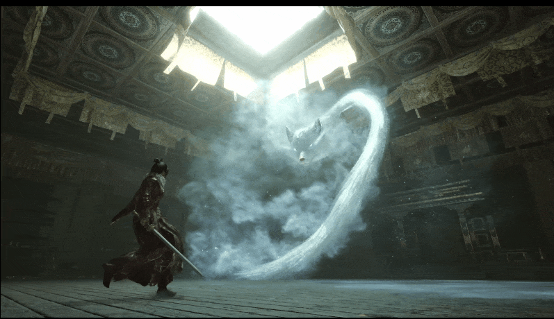(例如這個動圖裏,一些閃避動作會帶掉毛特效,也就是掉毛是告訴玩家可以使用對應的衍生招式)