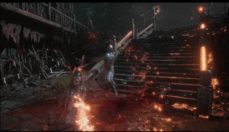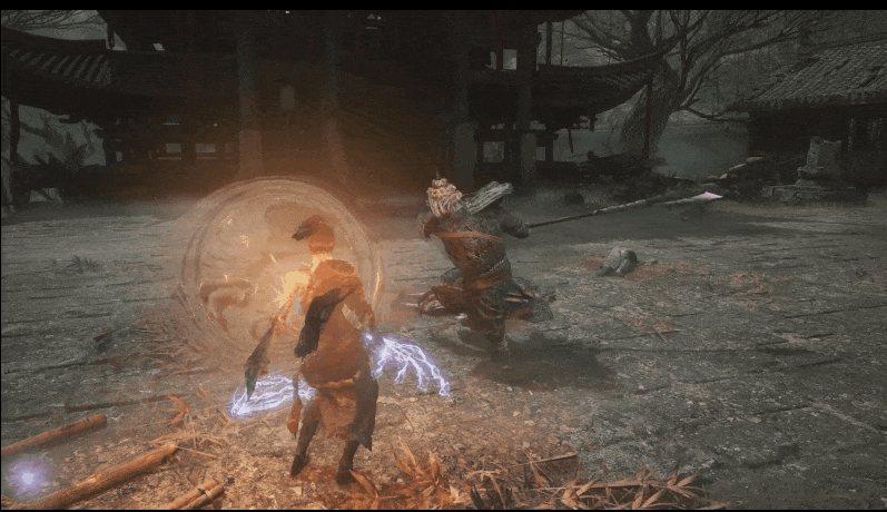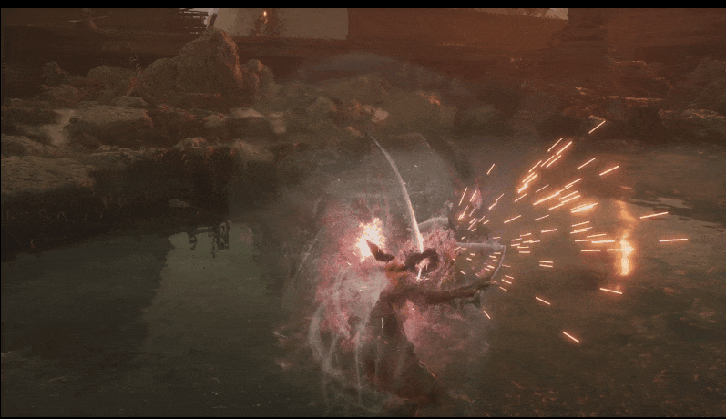 但在這一幕裏,會有一個武器swap,例如苗刀造成deflect硬直後切換戟,苗刀dodge切雙劍。