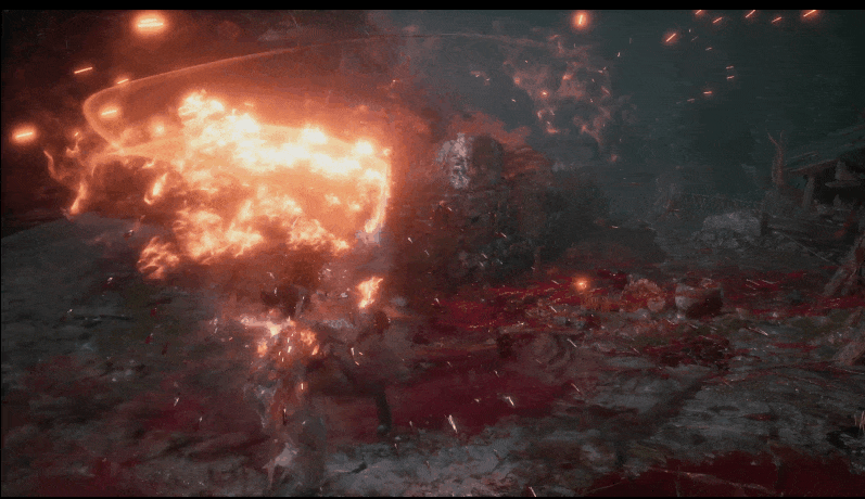 對了,看到很多人批評這個演示裏的「特效」太猛,但我覺得特效是用來「一白遮三醜」的,例如下面這個動圖,很顯然能看到這一個招式衍生是一個帶無敵幀,一個帶霸體,而且看著花裏胡哨但效能卻很差……