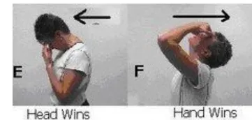 c. 維持頭部姿勢不變,將雙手置於前額,向後推動頭部,