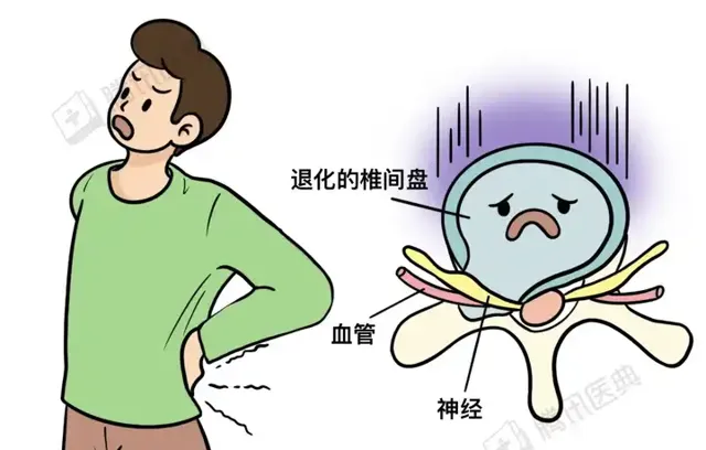 但退變的椎間盤,神經、血管就會長到椎間盤裏面,引起疼痛。