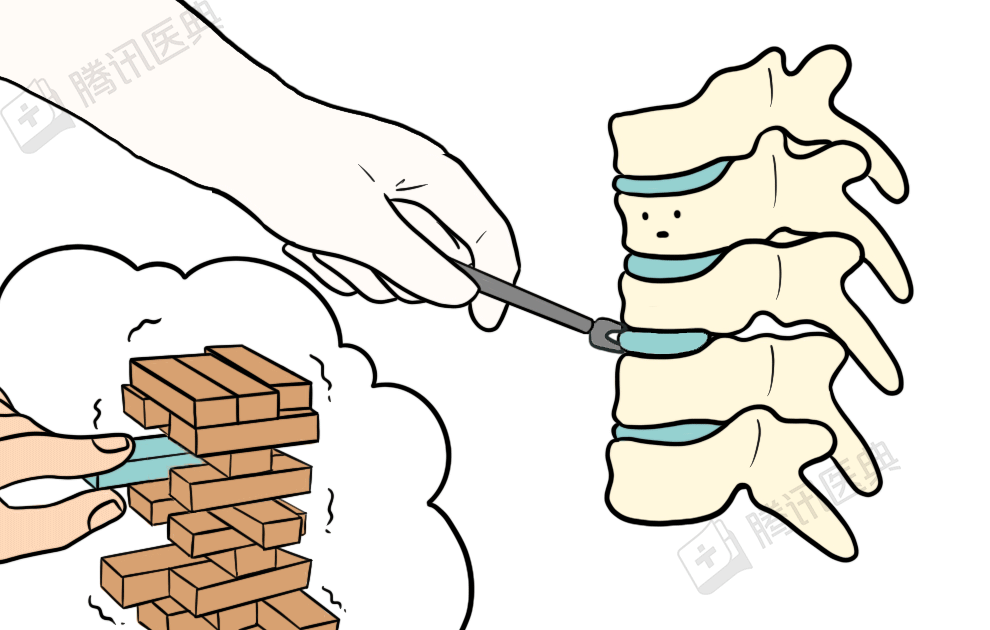 但去除椎間盤後,腰椎就會變得不穩定,就像從搭好的積木中間抽掉一部份。