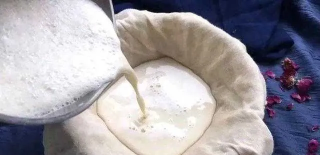 豆子磨好了,還需要倒在「炊巾」(幾層紗布做的濾布,也用來蒸饅頭、也用來濾豆漿。方言裏把蒸稱作炊,這樣的紗布統統都叫炊巾)裏過濾,濾去豆渣。
