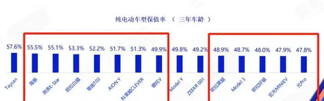 ▼ 合資油車三年保值率44%-57%,小電車約50%保值率,已經能追上非熱門油車水準。